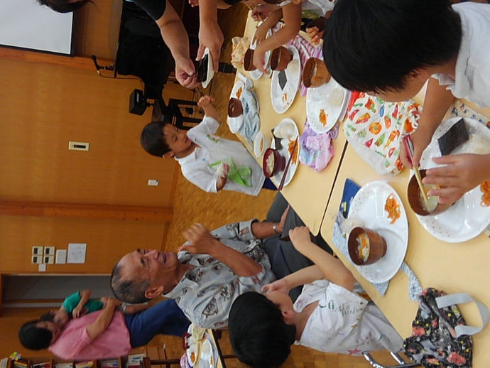 星組さんご苦労様~✴ お味噌づくりしました😊 混ぜて⏩潰して⏩丸めて⏩投げて⏩完成🙌 星組さんご苦労様~✴混ぜて⏩潰して⏩丸めて⏩投げて⏩完成🙌て⏩投げて⏩完成🙌 給食のお味噌汁でいただきます🍴🙏